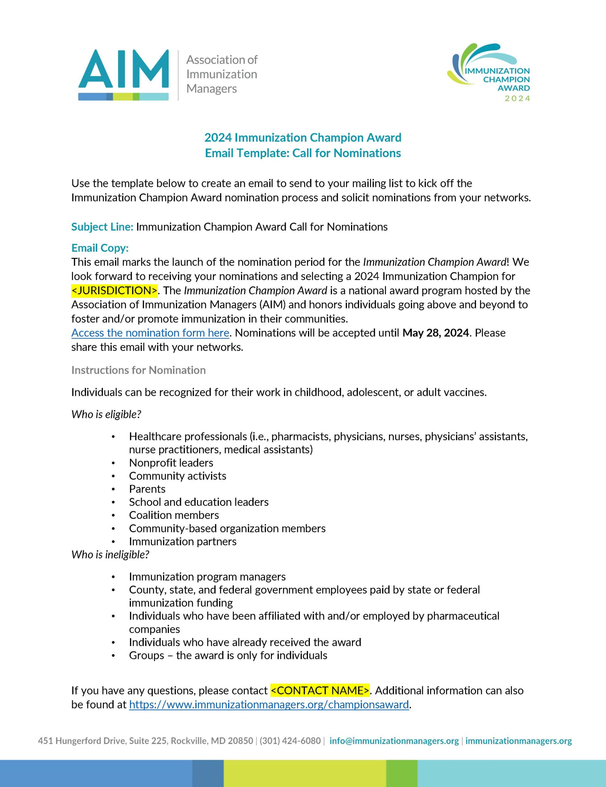 Association Of Immunization Managers 2024. Register below for the 2024 aim leadership in action conference in new orleans, la! Contact information for immunization program managers, listed by state.